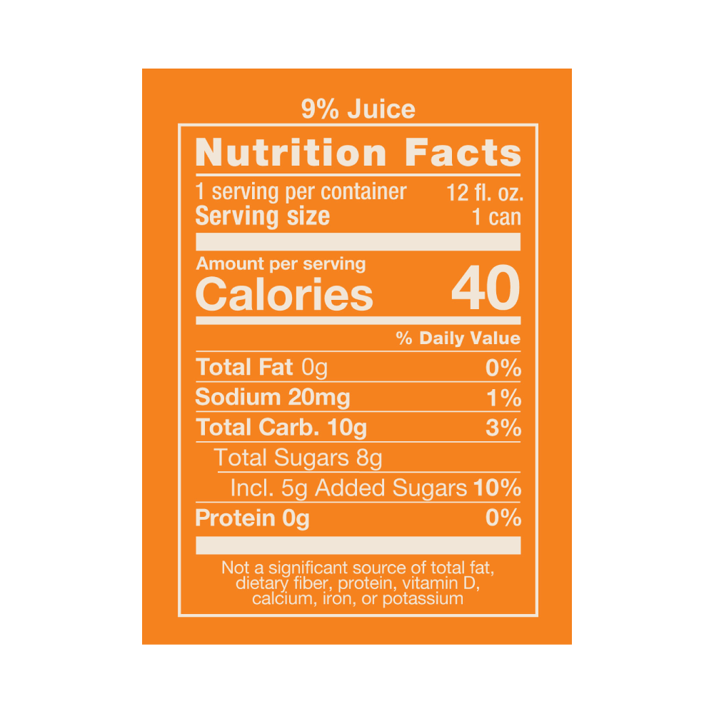 Carbonated Water, Blood Orange Juice Concentrate, Cane Sugar, THC Emulsion (Water, Natural Flavors, Vegetable Oil, Hemp Extract, Sucrose Acetate, Isobutyrate, Sodium Benzoate, D-gluconic Acid, Ascorbic Acid), Natural Flavors, Potassium Sorbate, Sodium Benzoate