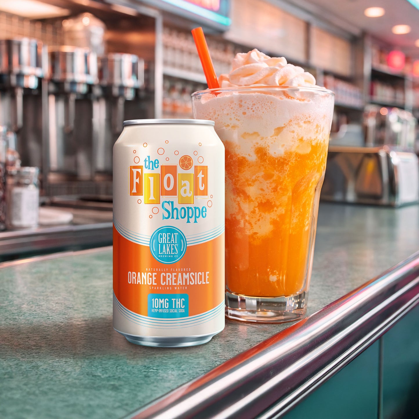 Happy days are a sip away with The Float Shoppe, a social soda by the friendly neighborhood soda jerks at Great Lakes Brewing Company! Inspired by the nostalgic flavors of classic malt shops, The Float Shoppe is a fizzy, feel-good throwback serving up a dreamy THC-infused twist for a crafted modern day mellow.
